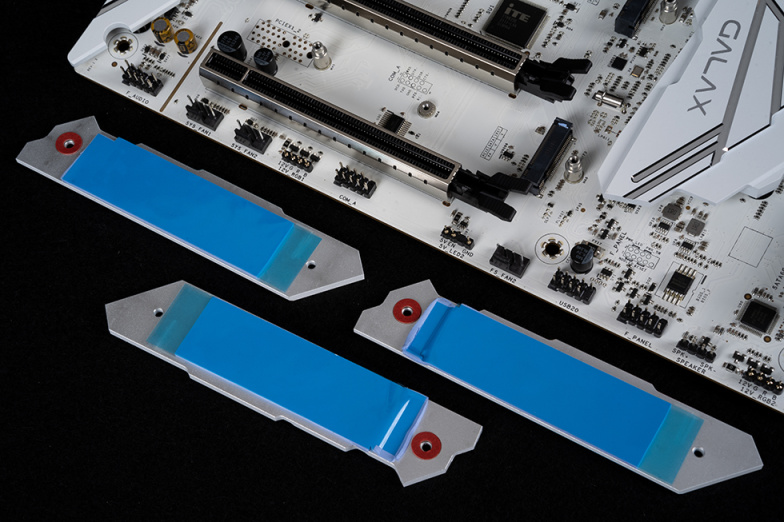M.2安装位均有一体式散热装甲覆盖,散热装甲背面都覆盖高系数的导热垫,进一步提供散热性能。