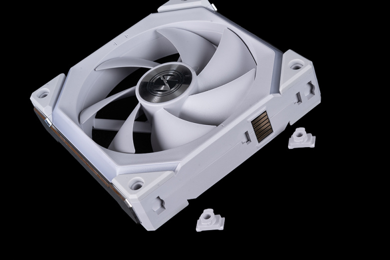 积木风扇 SL V2的互扣模式是透过一个风扇外框侧边卡扣与另一个风扇外框侧边的互锁槽相互扣住。为了避免散热排受到干扰,也为确保外观的整齐,卡扣在不需使用时,可拧开取下。安装线材的风扇端连接部位设计成较小的嵌入型设计,让风扇电源模块尽可能贴近风扇,不影响散热排配件之间的兼容性问题。