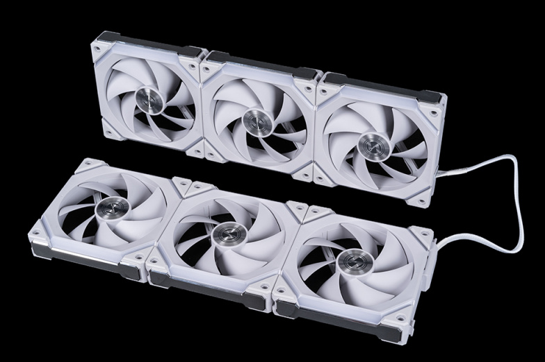 积木风扇 SL V2支持将风扇的二个风扇组桥接起来,创造一个3+3互扣风扇组。接着这六个风扇可以连接到SL V2 UNI集线控制器的一个端口。这种新的桥接解决方案可减少连接机箱背部风扇时需要使用的线材,同时桥接在一起的两个风扇组之间可以共同使用全新的光效。请注意控制器的每个接口最多支持连接6颗风扇,单个控制器最多支持连接总共16颗风扇。