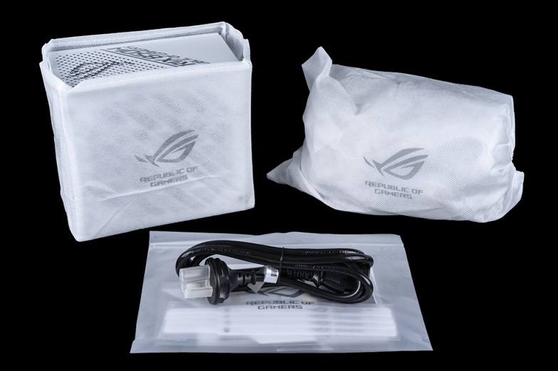 打开包装后可以看到电源本体和线缆均带有单独的无纺布包装,配件也全部由独立的塑料袋装载。