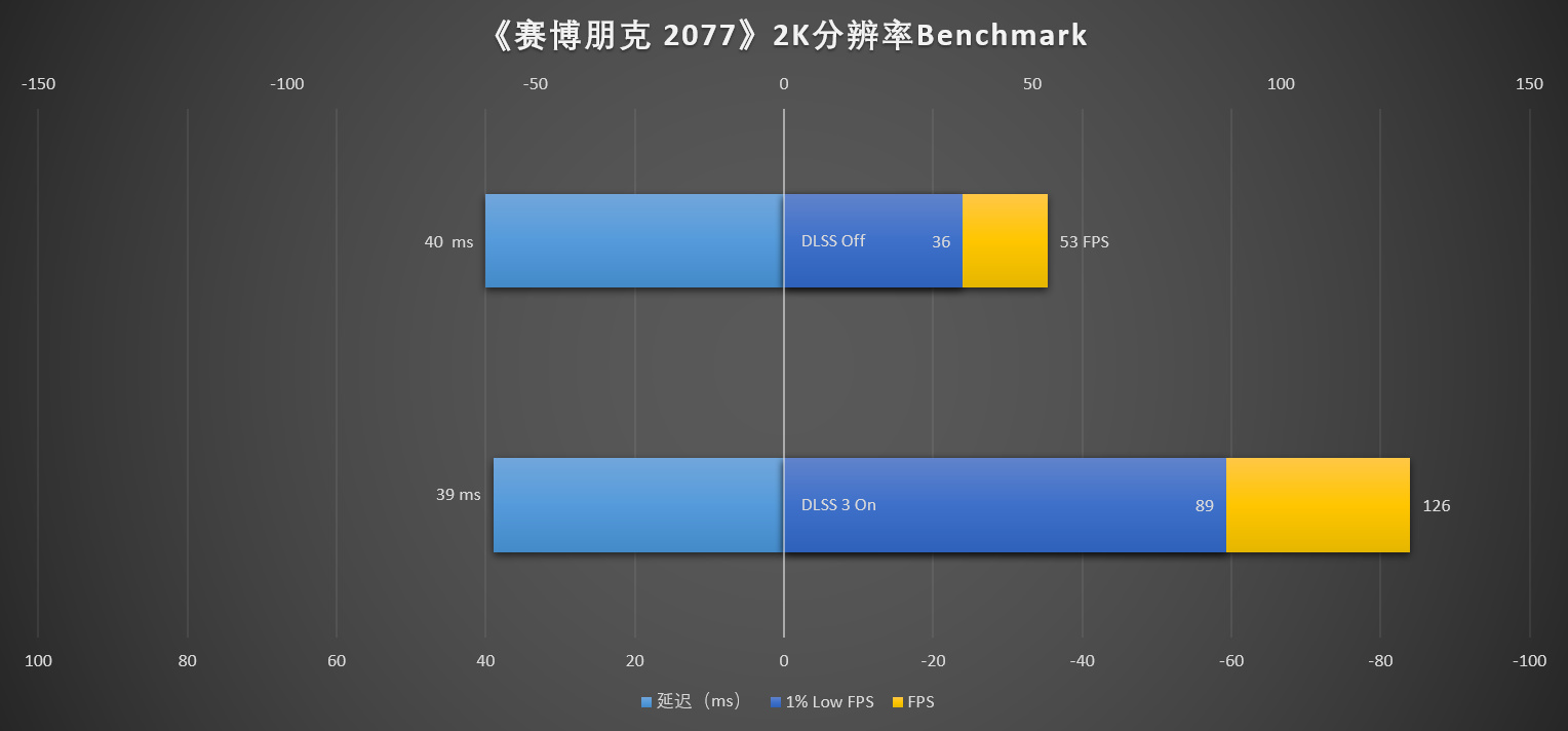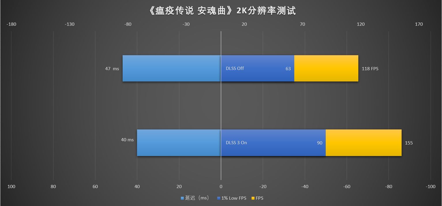 简单来说,不开启DLSS时,刚好可以跑满2K 120Hz-144Hz的主流2K电竞显示器的刷新率,而开启DLSS 3之后,则进入了高端2K 电竞显示器(2K 240Hz)的行列。