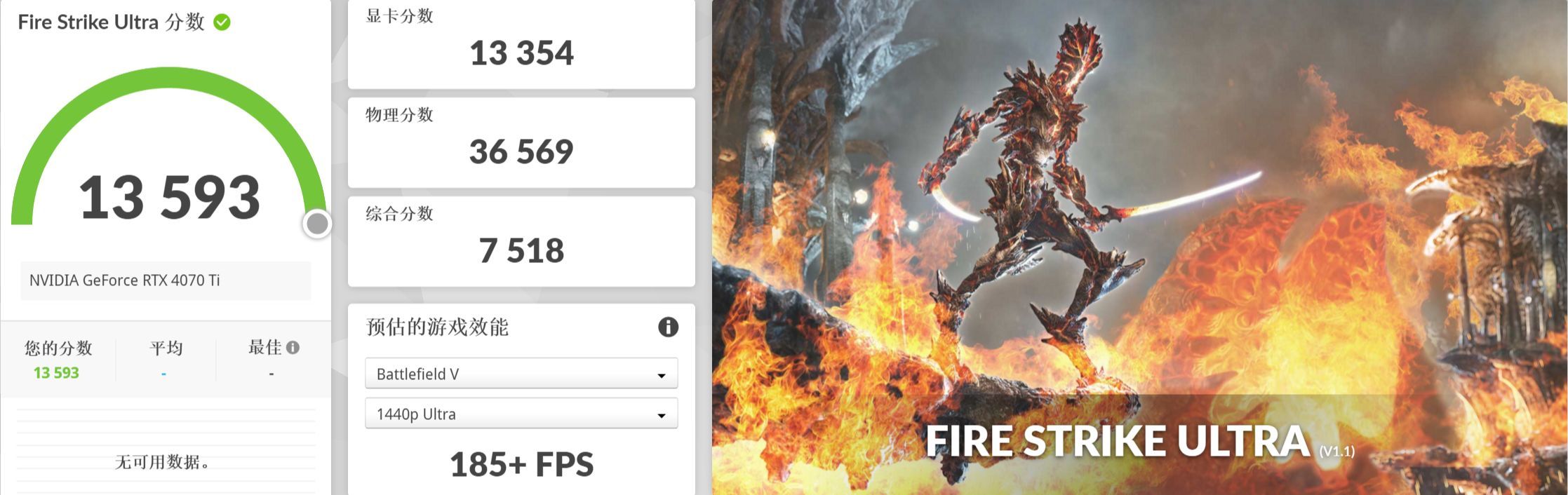 ▲RTX 4070 Ti的Fire Strike Ultra显卡得分为13354分。