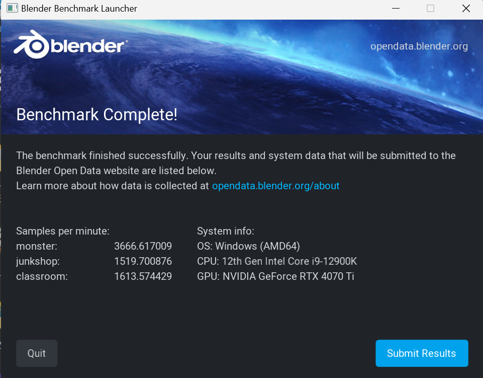 而Blender Open Data Benchmark将进行monster、junkshop、classroom三个场景的渲染测试,本次将同样比较RTX 4070 Ti与RTX 3080 10GB。