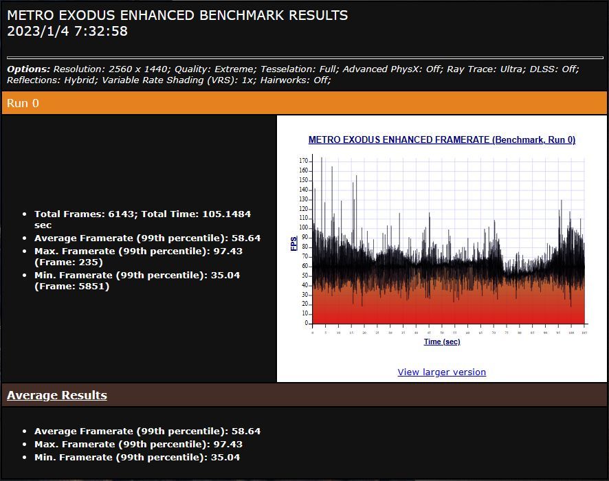 ▲画质为预设最高(Extreme),在关闭DLSS功能时,99%高的平均帧率可达58.64 FPS,刚好跑满2K 60Hz的显示器。