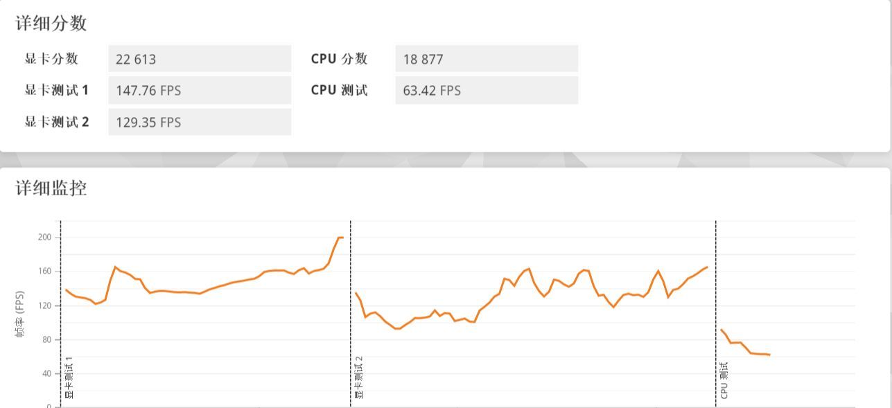 ▲其中显卡测试1的帧率为147.76 FPS,显卡测试2的帧率为129.35 FPS,均很接近主流2K电竞显示器144Hz的刷新率。