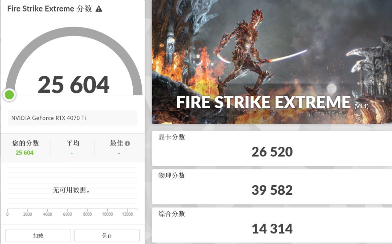 ▲而在2K 分辨率,使用DX 11的3D Mark Fire Strike中,RTX 4070 Ti的总分为25604分,显卡得分为26520分。