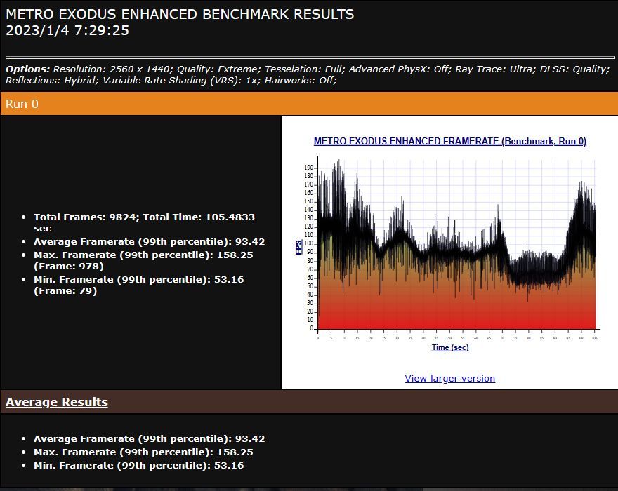 ▲而开启DLSS功能后,99%高的平均帧率增至 93.42FPS,游戏流畅度上升到了未开启DLSS时的1.5倍,配得上2K的高刷新率显示器了。