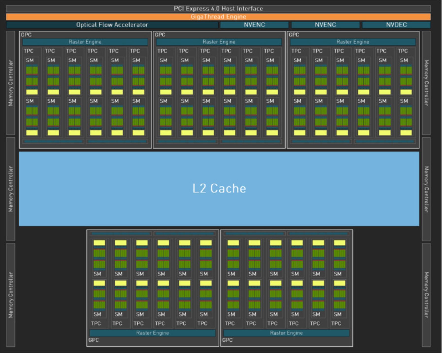 ▲而每两个SM组成一个纹理处理集群(Texture Processing Clusters,TPCs),再由多个TPC组成一个图形处理集群(Graphics Processing Clusters,GPCs)。