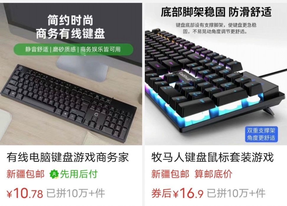 需求是有个键盘就好的,直接并夕夕9.9包邮,能用,或者买电脑送的,那也挺好,低价位这些区别都不太大。