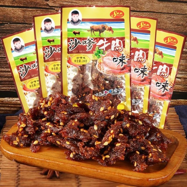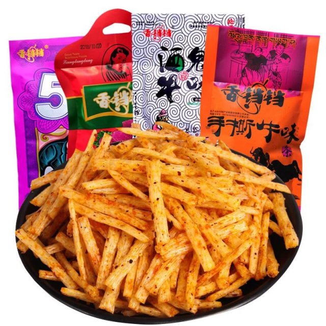 这个就是小学初中的时候去小卖部必买的零食,吃着也不辣,带一丝甜,但是好像现在的小卖部里面已经没有了。