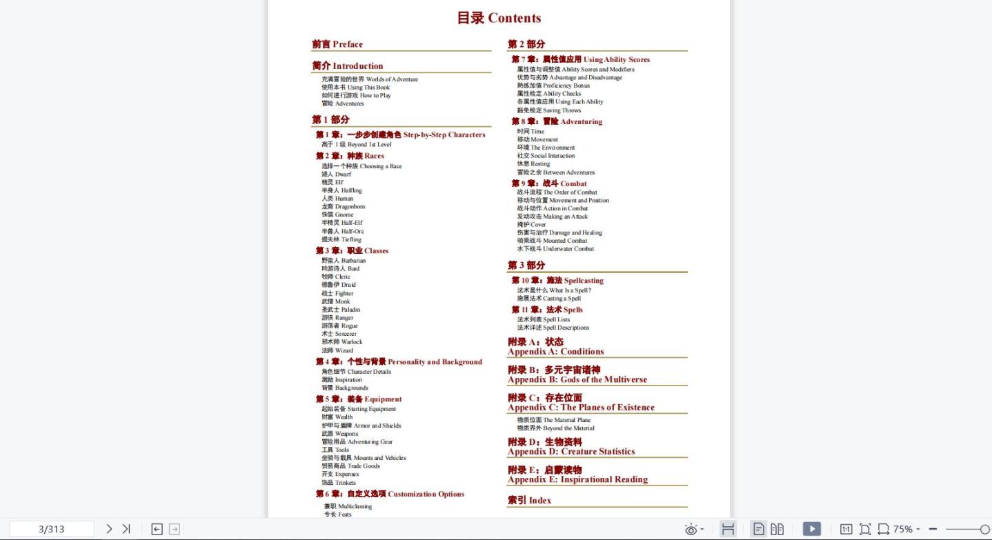 國內大佬翻譯的DND最新版本的玩家手冊,足足313頁的容量