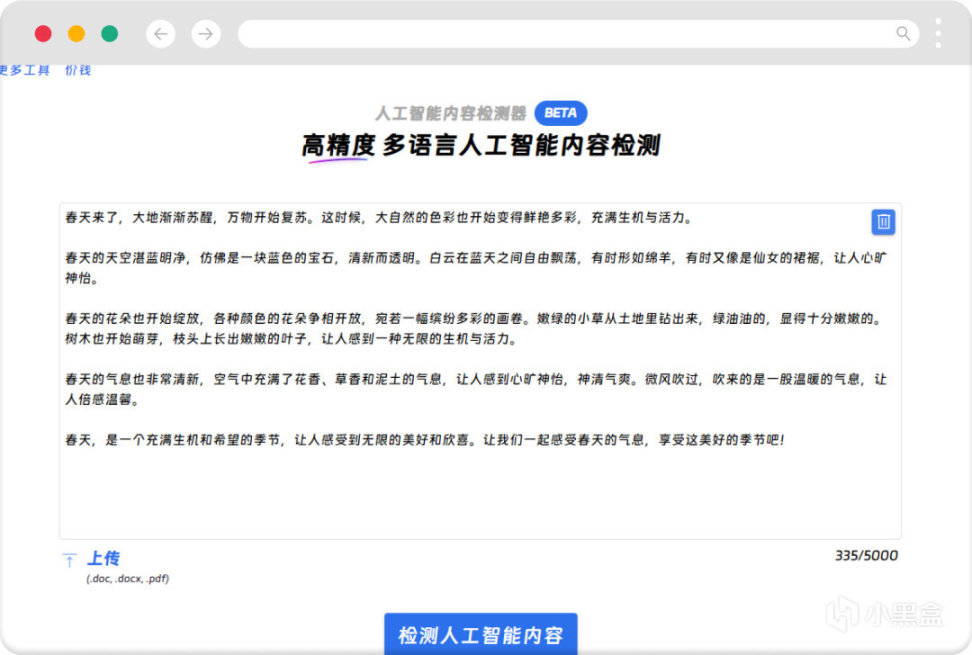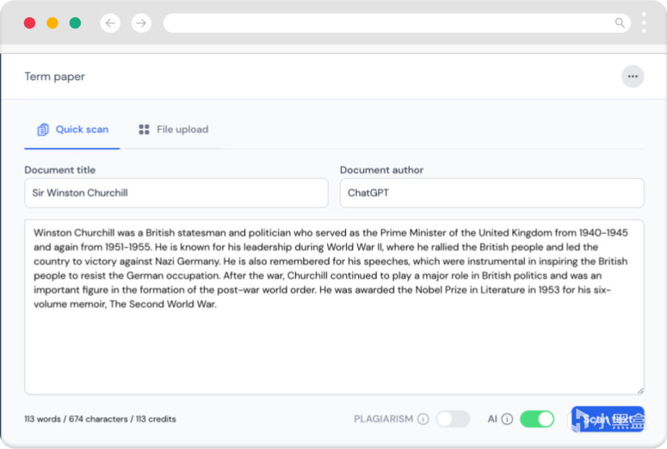 Copyleaks 是一个专业的 AI 内容检测器和抄袭检测器。他能够快速分辨出内容是机器生成还是人工生成的,并给出相应的评分和反馈。他还能够检测出内容是否有抄袭或剽窃的情况,并提供详细的报告和证据。