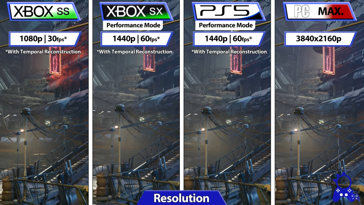 在性能方面,PS5/XSX和XSS的质量模式在某些地方会有一些卡顿问题。在性能模式下,PS5的帧率比XSX更稳定,但某些阶段帧率下降在PS平台上更为明显。