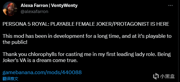 多亏了一群优秀的mod制作者,现在《女神异闻录 5》有了一位女主角,由亚历克斯·法伦 (Alex Farron) 为这个角色配音。