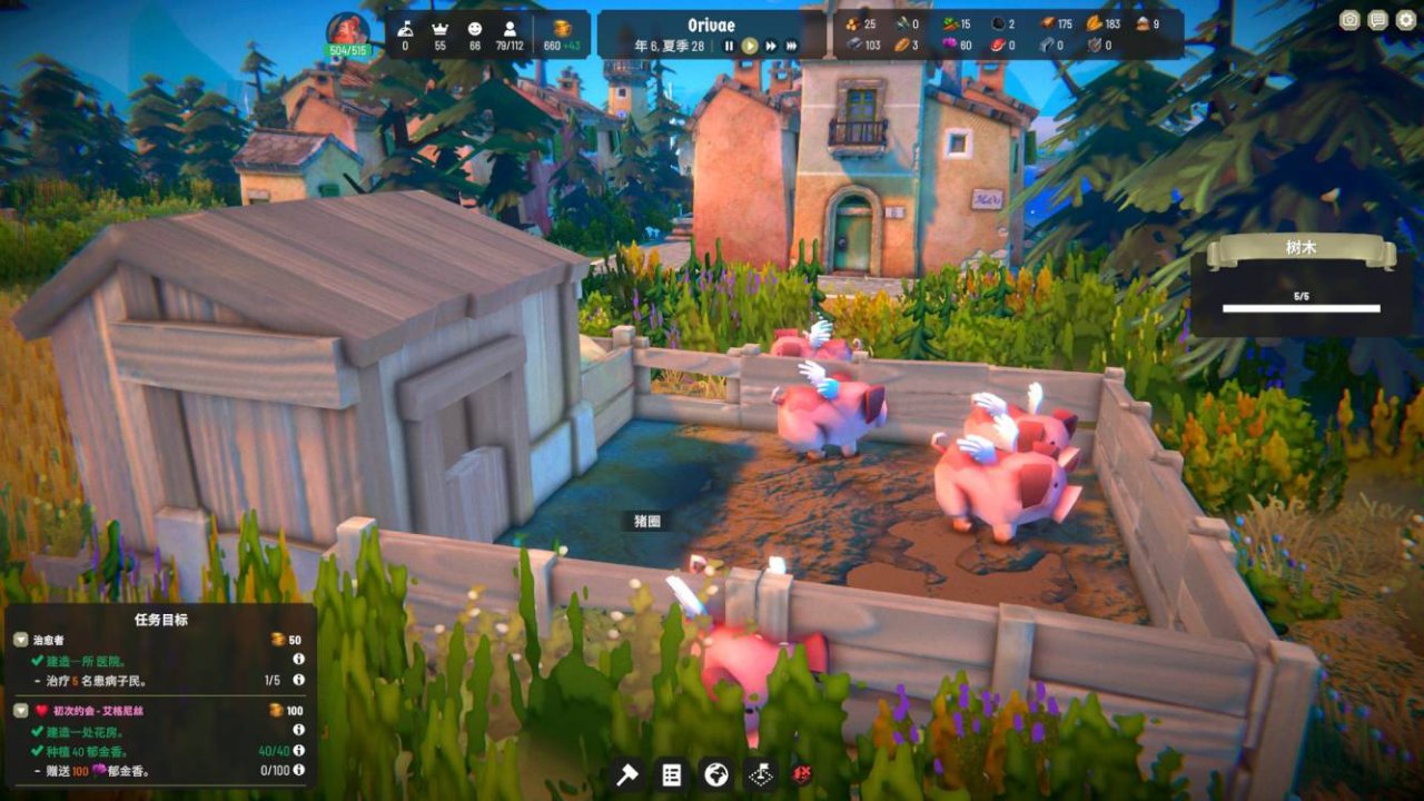 游戏玩法方面城市建造+模拟经营中规中矩,在2月steam新品节中算是一枝独秀。阶段式任务让玩家更有成就感,游戏中出现的随机事件让平静的生活中添一段波澜(饥饿的时候大概率出现女巫给你火上浇油),不过本身是休闲游戏再作死也无伤大雅,随便玩即可。