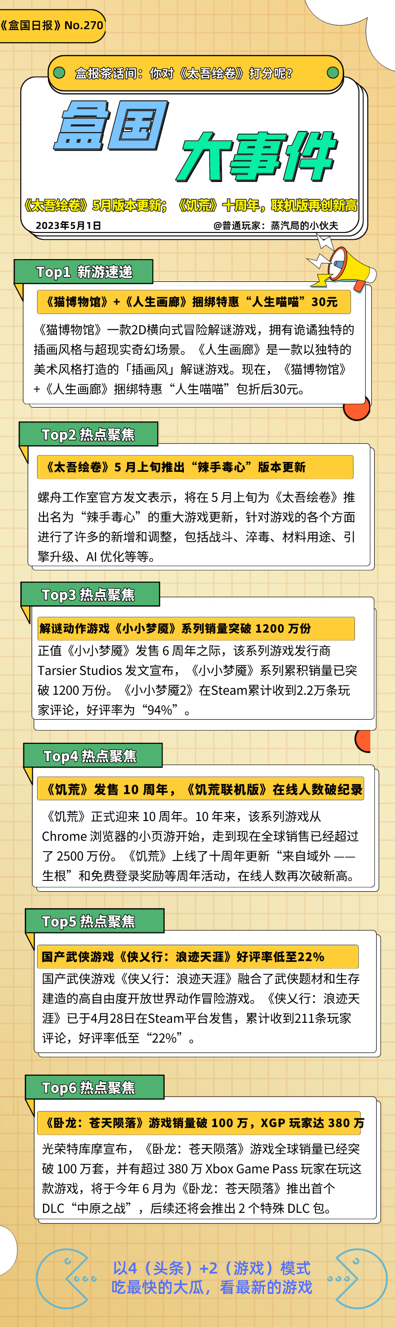 那么,你玩过《太吾绘卷》吗?如果玩过,你推荐新玩家入手吗?(文末有投票,耽误盒友们数秒参与下)