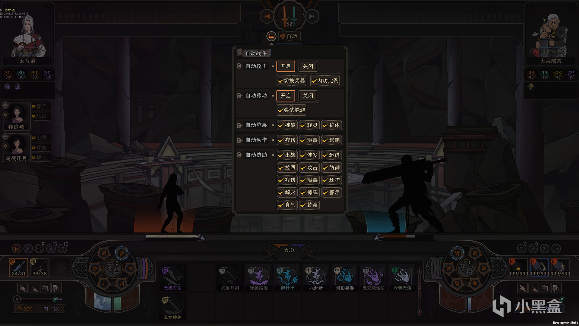 将自动战斗细化成了一个由众多选项构成的控制面板,大家可以根据自己的操作习惯选择哪部分由玩家做主,哪部分由 AI 做主。例如不喜欢操作兵器进行攻击的玩家,可以勾选自动进行兵器攻击,这样只要敌人进入玩家的攻击范围,玩家就会积极地进行兵器攻击。