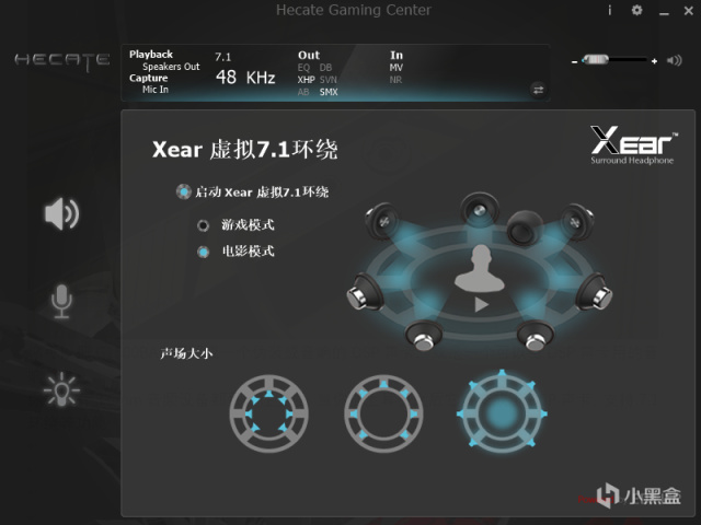当你需要打游戏时,你把监听耳机往里一怼,G1500BAR就变成了一个长得比较大的DSP声卡。你的监听耳机一下子变成支持7.1环绕、均衡器、动态低频等功能的游戏耳机。