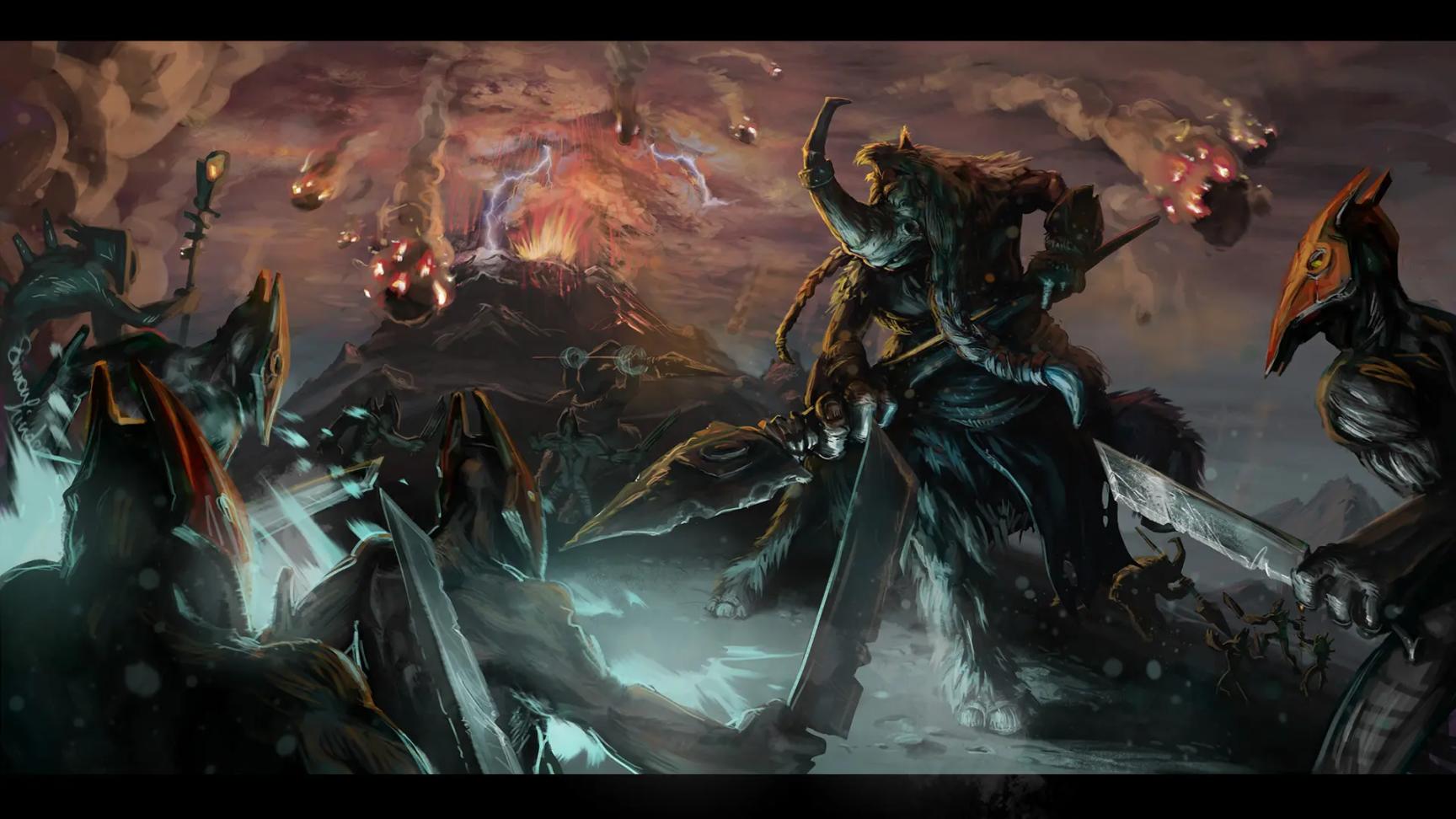 此刻火已渐熄,然位不见王影。诸位啊,将你们的火,给予传承者吧!而他将痛下杀手,对传承初始之火的古代神明们挥下手中的剑。
