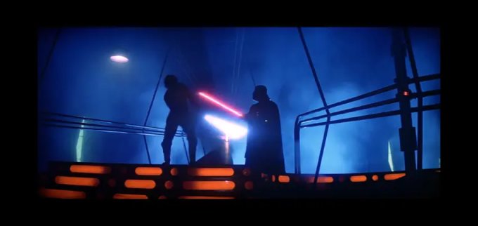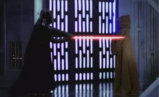 這是電影史上經典的一幕,雖然現在看起來這段光劍對決很敷衍,但按照四十多年前的水平,這一幕簡直神了