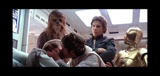 索羅將盧克救回,萊婭公主當着索羅的面給了盧克一個吻,索羅此前一直在追求萊婭公主,而萊婭公主認爲索羅是個流氓,當索羅看到這一切時,心裏一萬個羊駝在奔騰