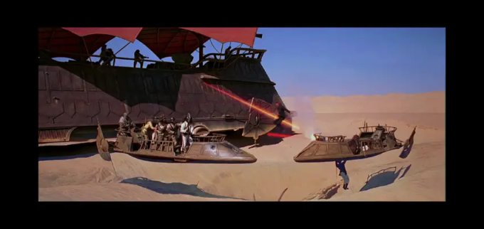 此後盧克也趕來幫忙,但盧克也被抓住並被判處死刑,他們被推到大漠中,賈巴打算讓沙漠巨獸沙拉克處決他們