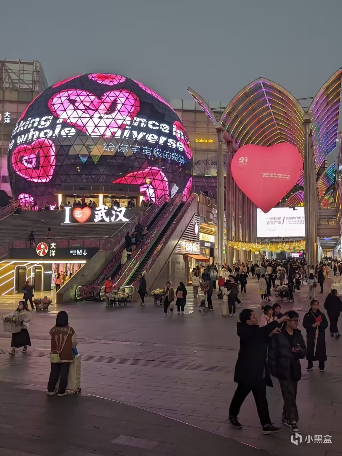 之后就去了光谷步行街、德意风情街,这里人就很多很多了,基本就是肩擦肩的走路,小吃也多,但是价格都挺贵的吧,路上四个人一起买了点烤串和冰淇淋吃吃,20块钱40小串鱿鱼。