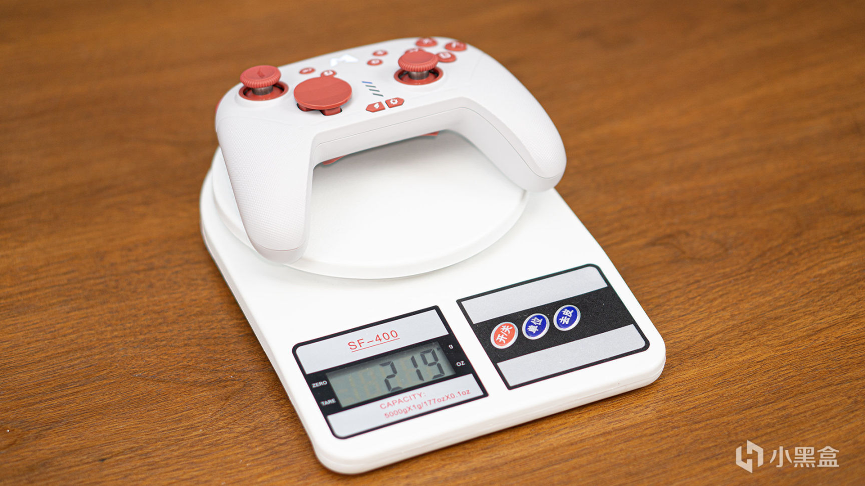 魔派赤兔HD機械手柄大概在219克,SwitchPro大概在251克,雖然重量不同,但實際體驗起來差別並不是很大。