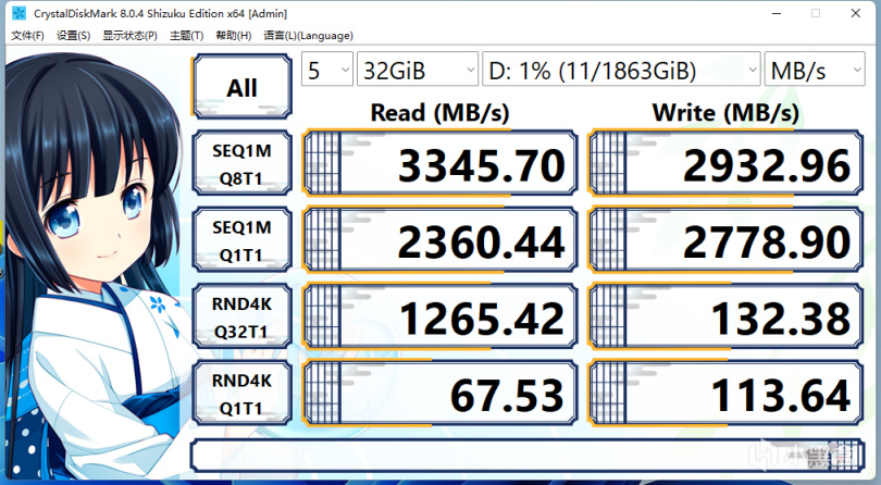 用CrystalDiskMark最大读取速度为3571MB/s,最大写入速度为3105MB/s。