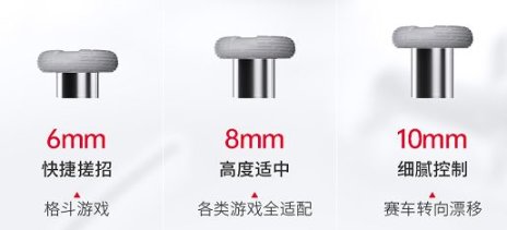 6mm,8mm,10mm三种。长短不一的摇杆使得行程手感也不一样。6mm的摇杆行程最短,适合方向控制要迅速的游戏,如格斗类游戏。