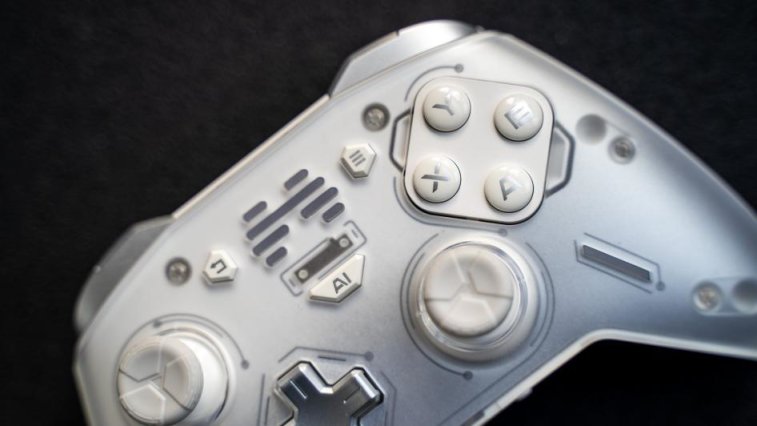 阿修罗2pro整体造型跟上一代基本保持一致,按键跟摇杆部分采用依然是传统手柄的AXBY布局方式,不过额外进行了橡胶包裹,摇杆一圈还进行了防滑处理,看上去有一种通透感,并且在表面还进行了磨砂处理,用于防滑。