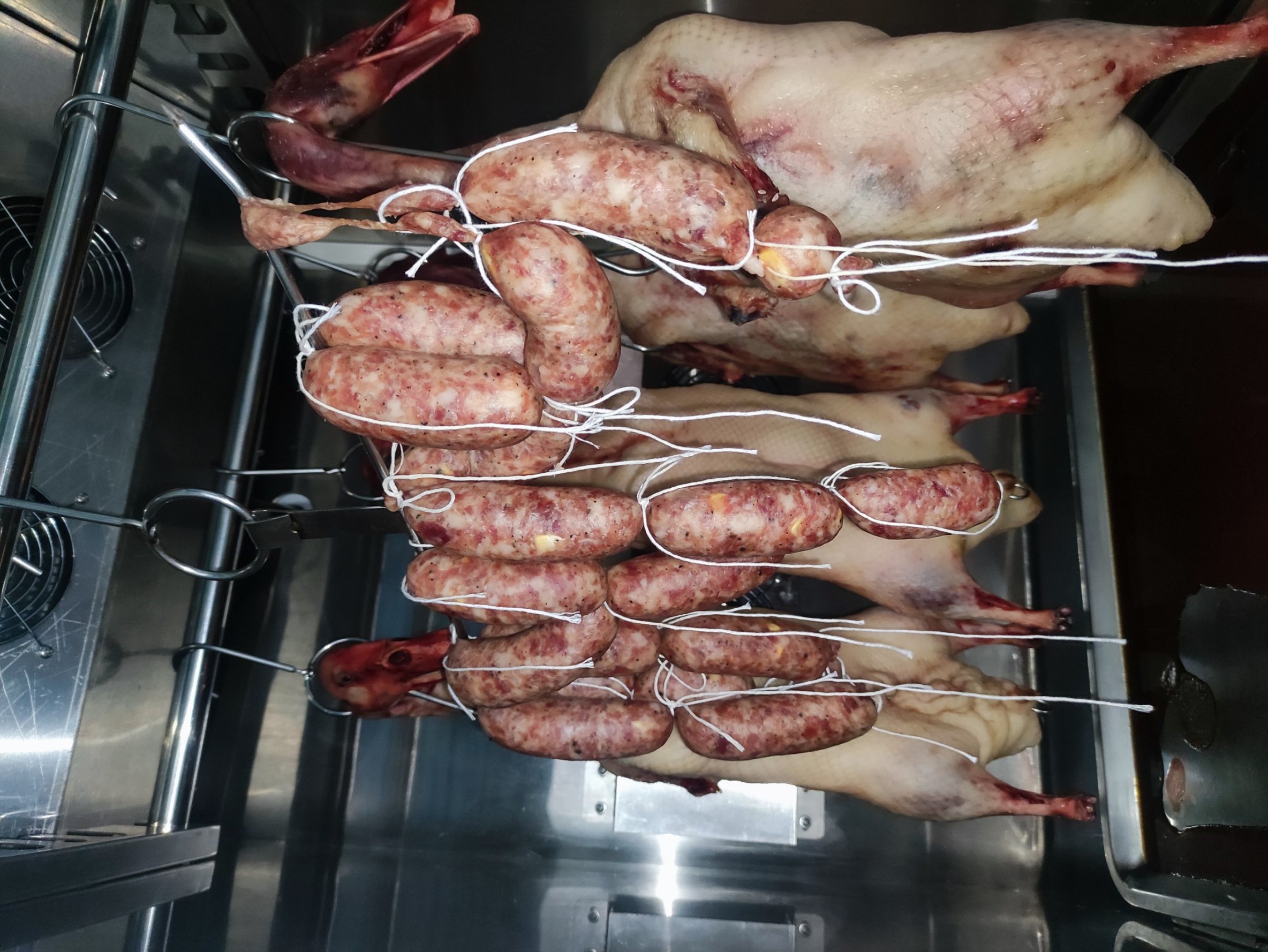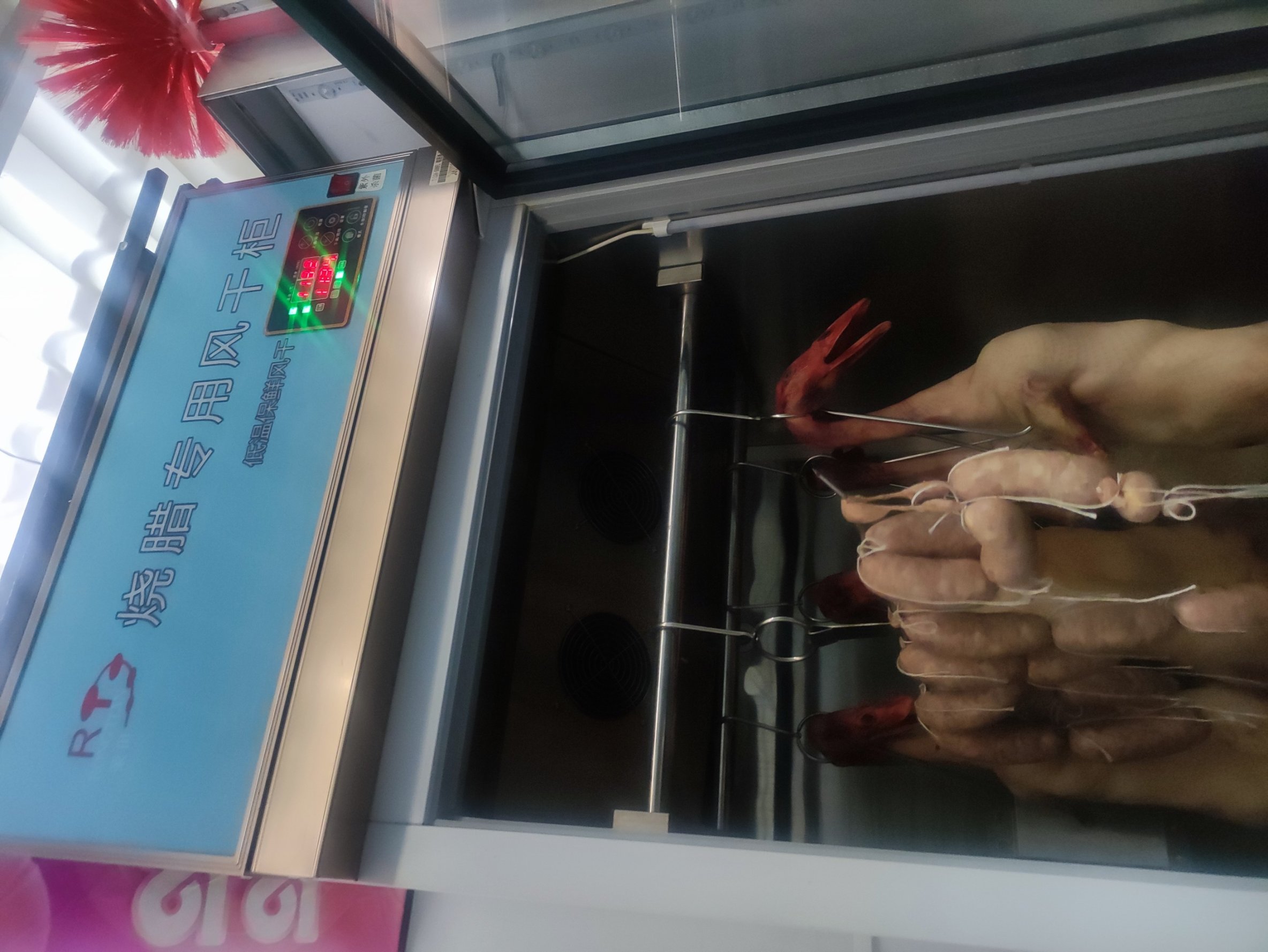 弄好之后用牙签把每一节肉肠扎几下排气,然后拿去通风的地方晾两个小时,用风扇吹也行,或者你家里有风干机,我是用风干机拿的
