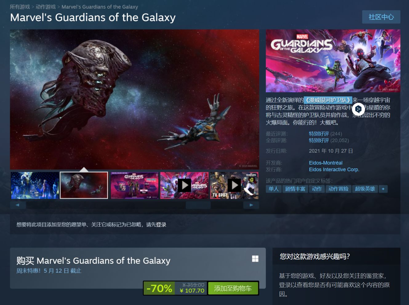 此外,如果各位盒友在電影院看完《銀河護衛隊3》之後還不盡興的話,現在Steam上的特別好評的劇情向線性遊戲《漫威銀河護衛隊》也在史低特惠中~