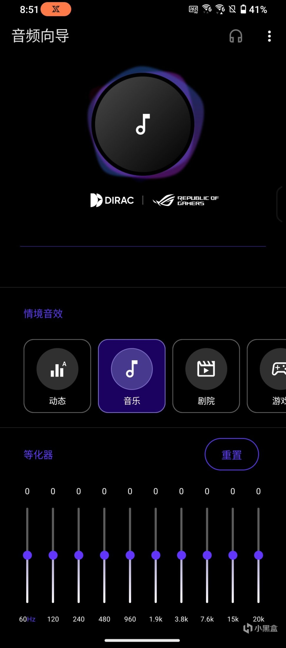 - 游戏模式:最宽声场,增强轻微声音的细节呈现(如脚步声),同时增强高频声音的效果。