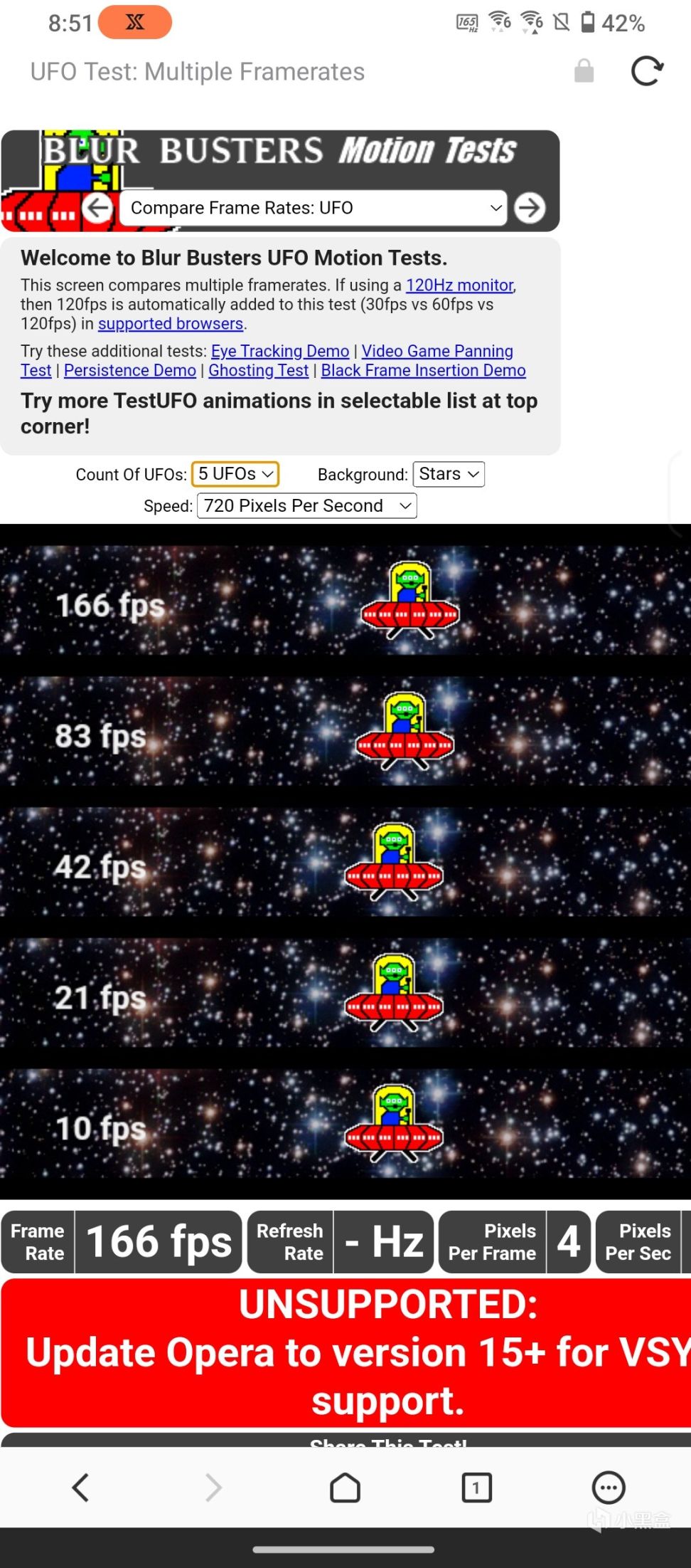 在小飞碟测试中,165Hz相比144Hz在流畅度方面有一些优势。