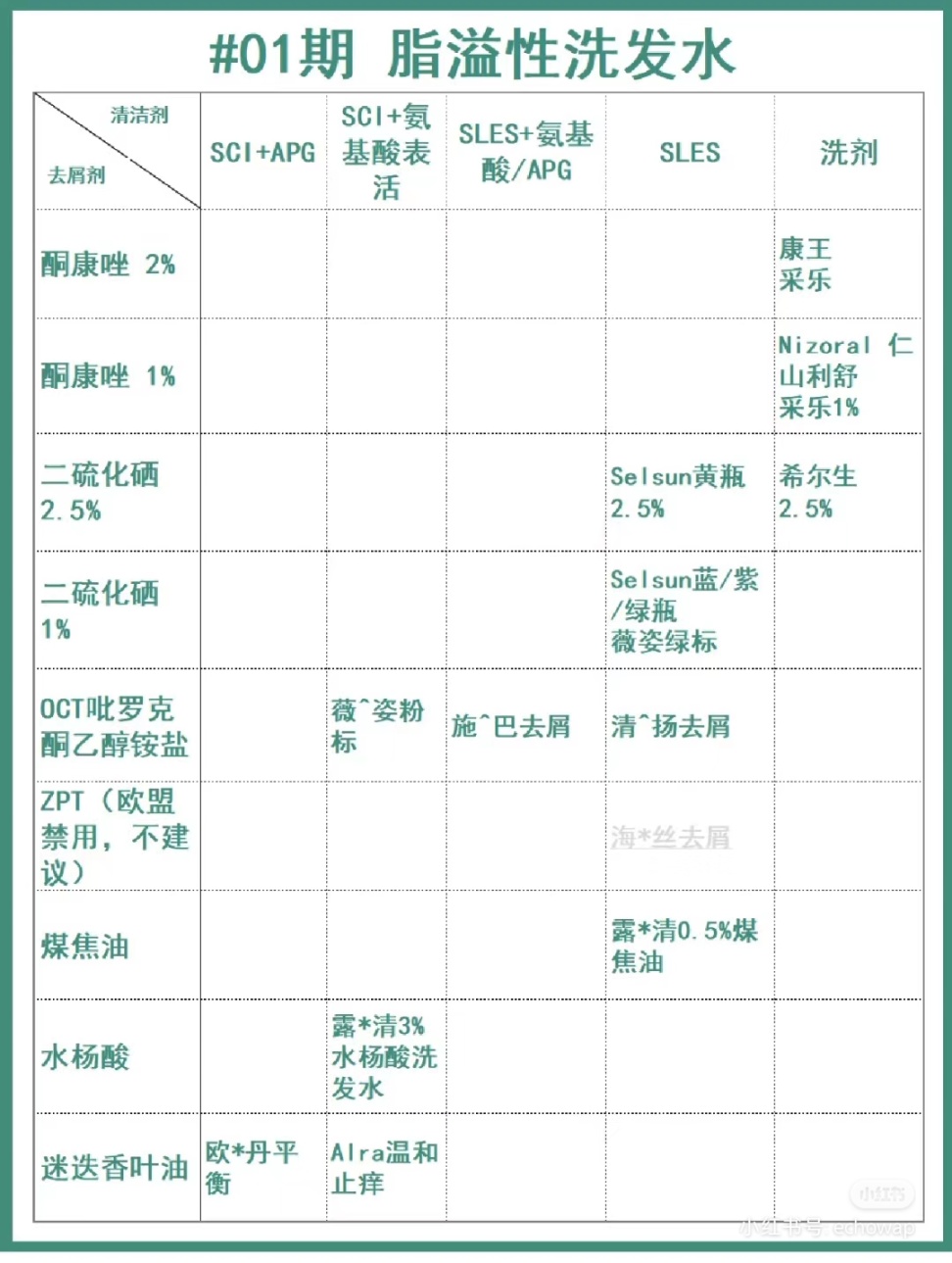 第三款就是一個彙總吧,大家如果脂溢性很嚴重,建議去問診,可以選擇最上面的康王和採樂洗劑。如果大家用了一個成分的洗髮水覺得沒用,可以選擇換一個成分使用。