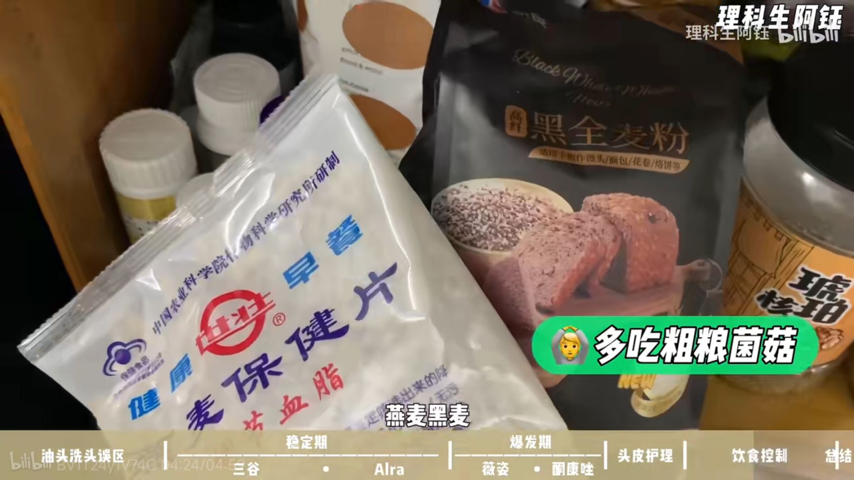 飲食上可以多喫含有維生素b的食物,可以減緩出油,抗炎,減緩痘痘。我很推薦大家去喫無添加的燕麥,不僅膳食纖維豐富,還有很多其他好處。