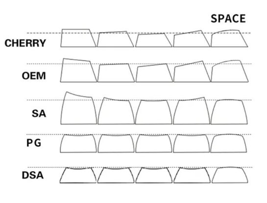各個廠家在生產鍵盤時,鍵帽的高度也截然不同,常見的高度有原廠、DSA、SA等等,從弧度、高度都不同,也決定了美觀度與手感,而這通常也是一個玄學,如果沒有上手仔細對比,不會有任何不適。