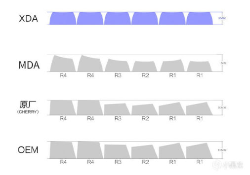 圖中列舉了一些常見的鍵帽高度,選購的時候可以參考