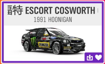 赛事推荐车辆:1991款HOONIGAN GYMKHANA 10 福特 ESCORT COSWORTH GROUP A;1986款奥迪#奥迪运动QUATTRO S1(和游乐场车辆通用)