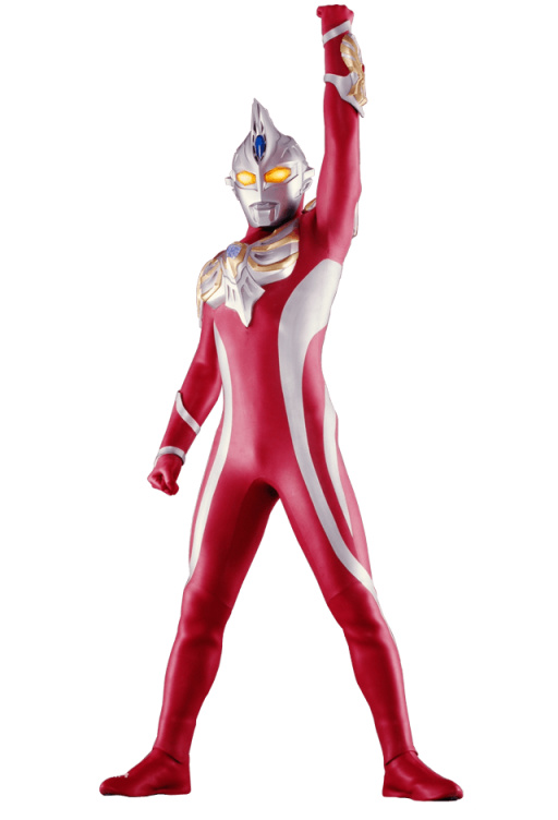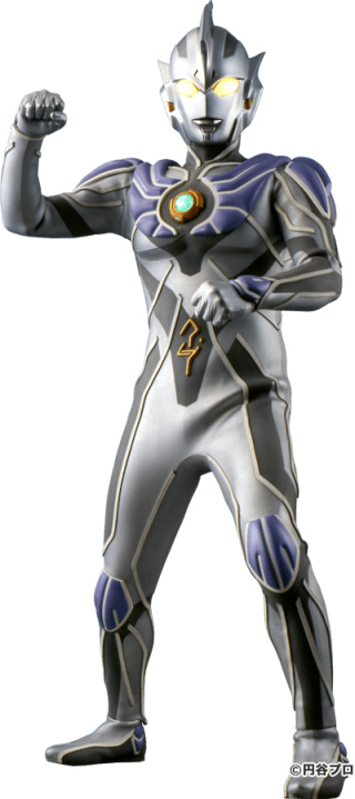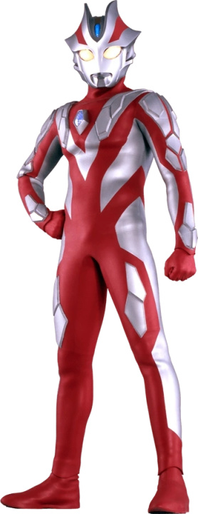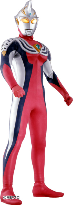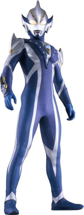 【特征】头顶发型向前,身体为红蓝银配色,身材比迪迦较壮,护甲仅有一条,胸前计时器首次使用了多边形形状。