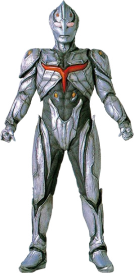 【特征】造型上看起来有肌肉和血管的感觉,不像以往的奥特曼那样平滑,表皮像是甲壳,胸前的灯计时器与奈克瑟斯类似,是一个异形的 Y 状身体配色为银灰(青年型为红银)