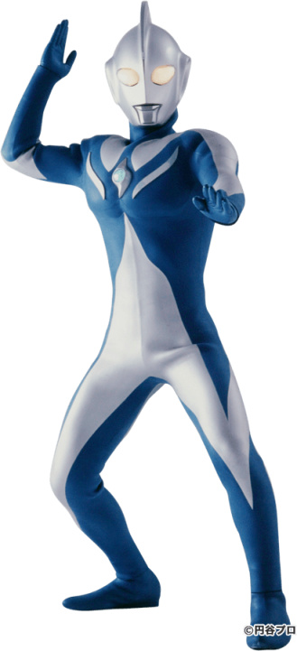 【特征】头冠两侧为黑色花纹,身体为蓝银配色(V2增加黑色,SV增加红色)是首个真正意义上的蓝色奥特曼。