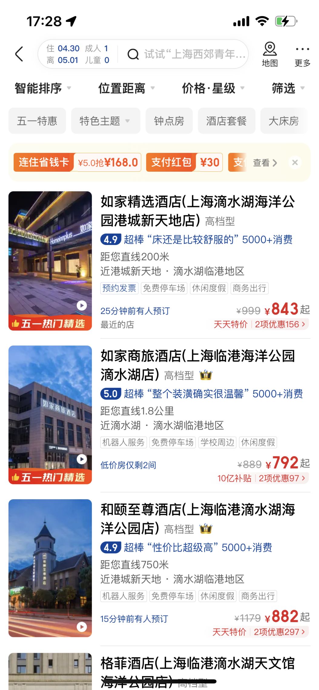 原计划是他们三个人来,然后让我蹭住两天,但是有位老哥另有安排了,所以我多多少少承担了一点,但也比直接住酒店划算多了。毕竟4.30号的闵行区和临港等偏僻地区酒店价格尚且惊人,5.1晚上的黄浦区住宿价格我已经不敢想了。