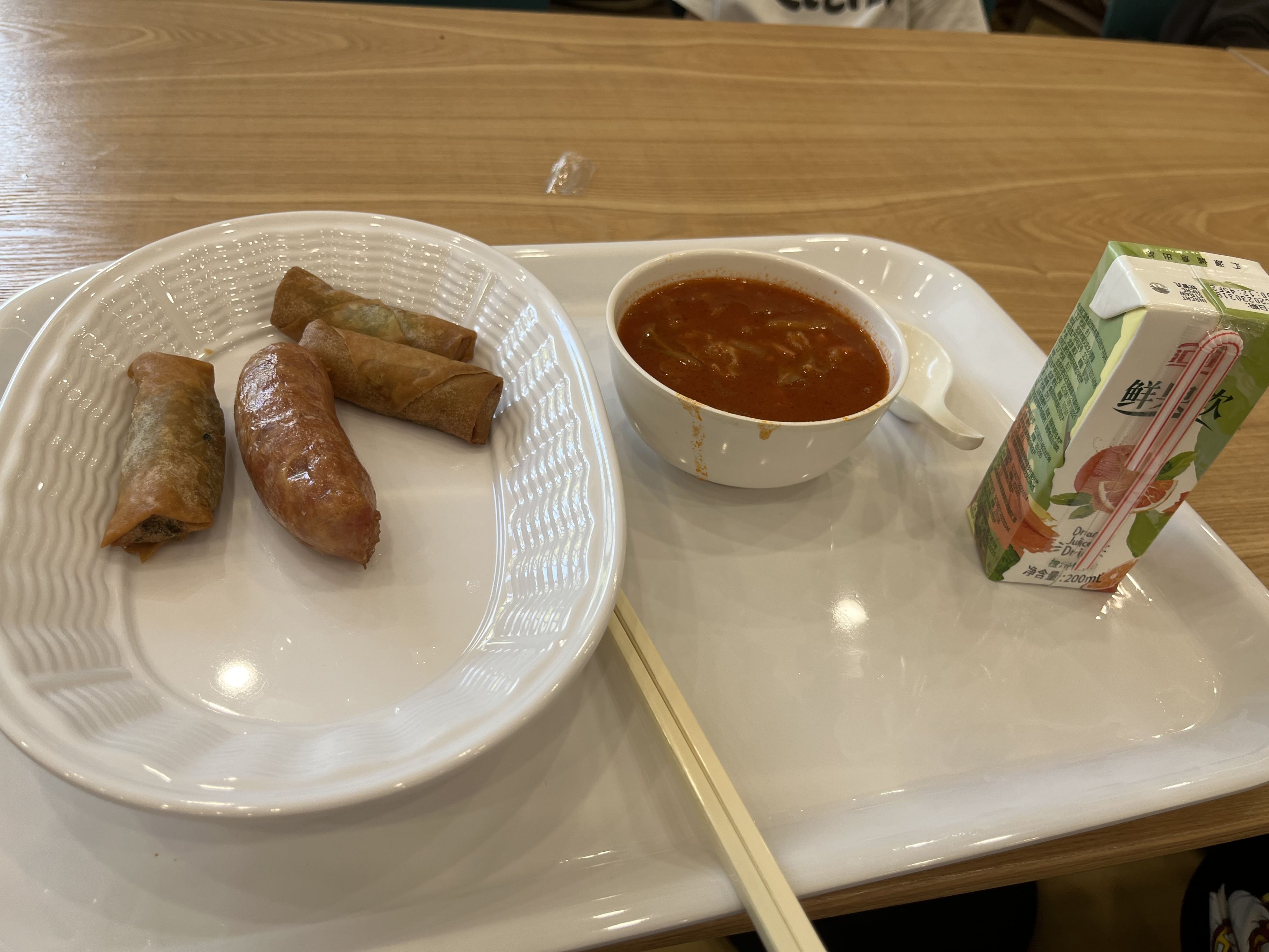 吃饭(从时间上看算下午茶了)在馆内解决,有中餐厅和西餐厅(主要卖披萨和饮品),价格略贵,不过在博物馆内这点溢价也能接受。我点了一根火腿,三根春卷,一碗罗宋汤和一份饮品。
