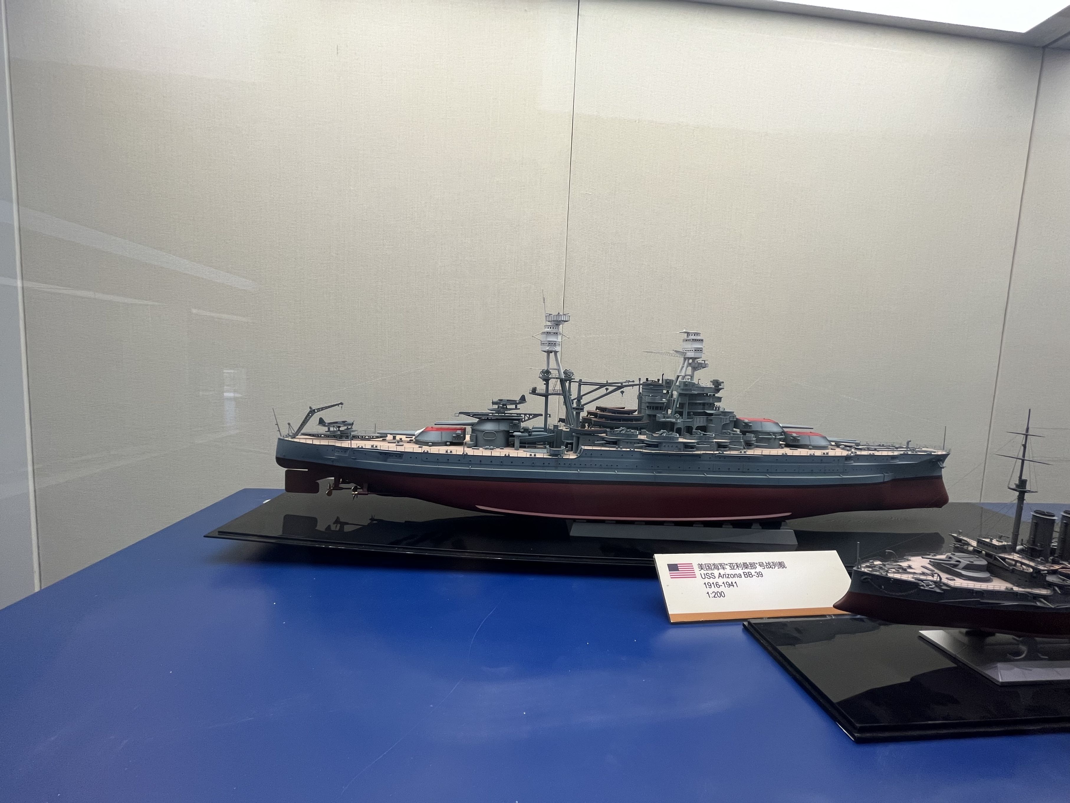至于镇馆之宝,有明代福船、春秋大翼战船、高清版大明混一图、水陆攻战纹铜壶、辽宁舰模型(不在军事航海馆而在一楼)、明代快船、伊敦船、明清大木舵等,我们都参观过了。