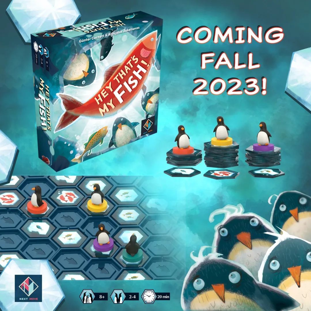 《嘿!我的鱼!》最早发行于2003年,游戏中玩家需要控制自己的企鹅在浮冰上移动,试图抓捕最多的鱼。新版游戏的规则并无变化,将包括全新的美术和升级后的配件,更多细节将在未来透露。