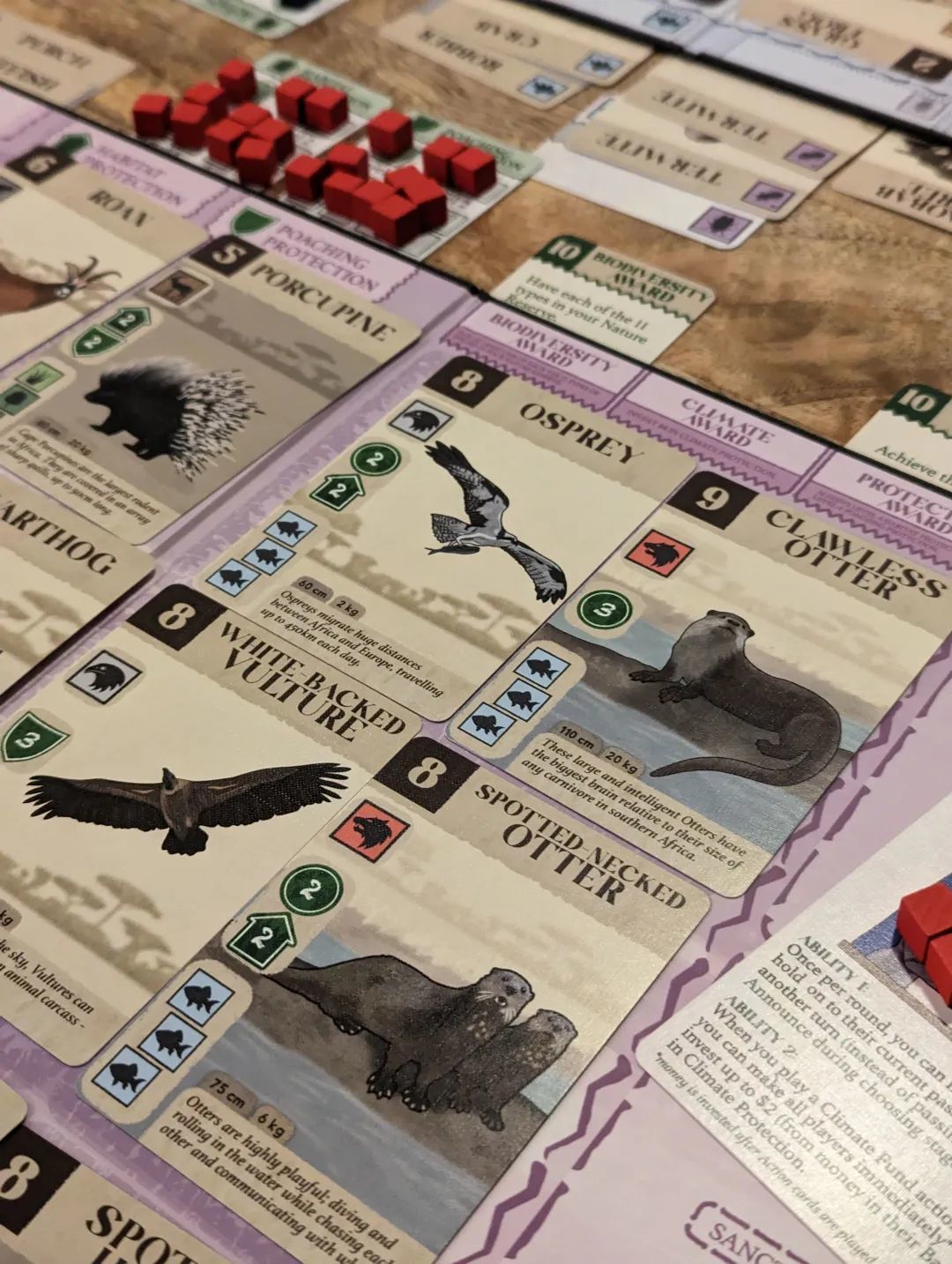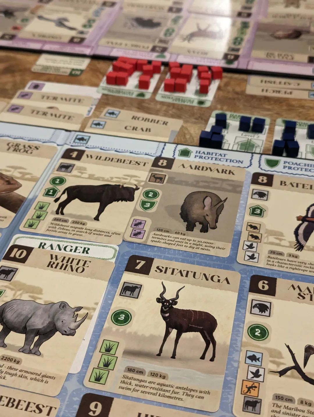 《Kavango》的背景设定在南非卡万戈地区,玩家将扮演10位拥有不同能力的保护专家之一,轮抽卡牌打出动物,并通过完成研究赚取收入,投资到自然保护区的保护中,竞争建立得分最高的自然保护区。