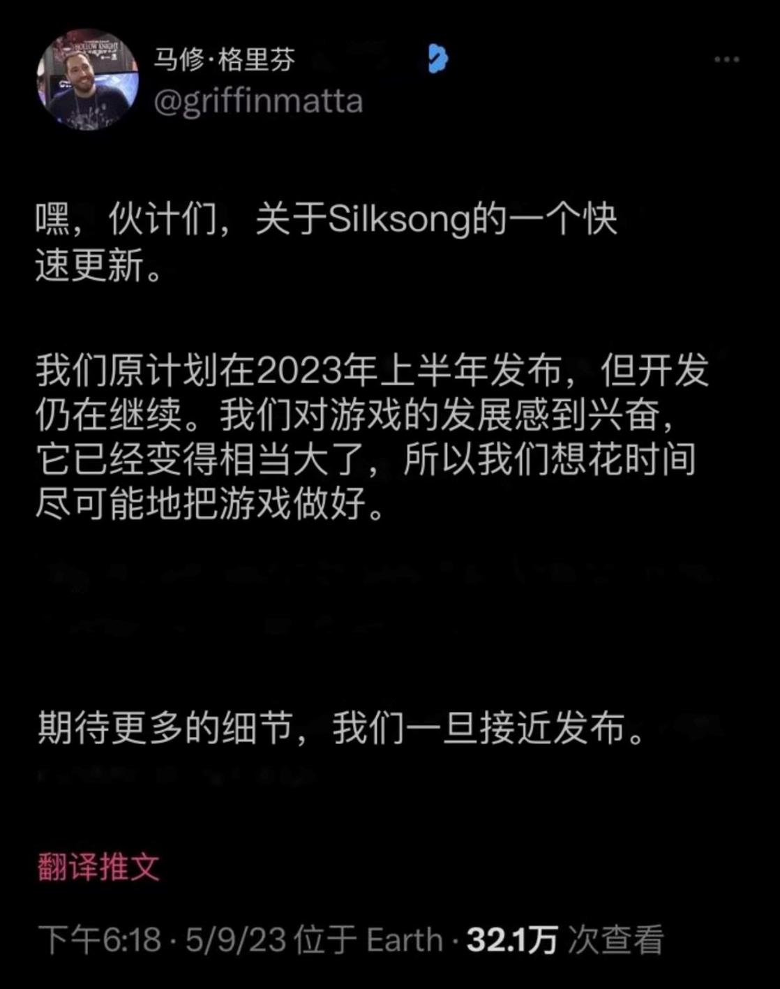 开发商Team Cherry在昨天推特上发布了一条最新消息,称游戏原计划是今年上半年发布,但现在开发仍在进行中,想花更多时间做好。