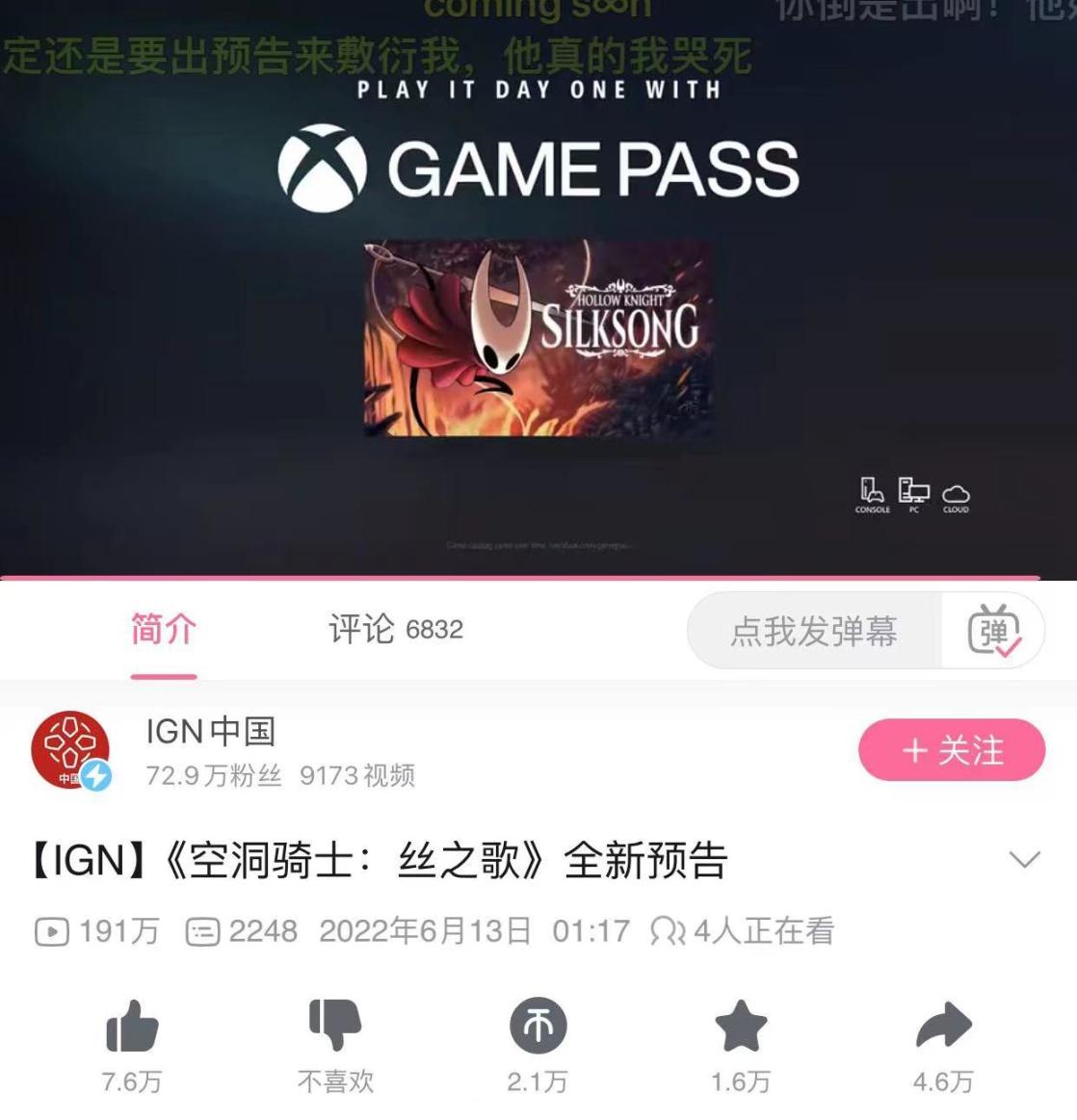 去年XBOX发布会上公布未来1年内加入XGP的预告,光是在B站IGN的预告播放就有超过百万人观看,4.6万人转发。眼瞅着离6月13日就没几天了,未来还不知道什么时候会发售。